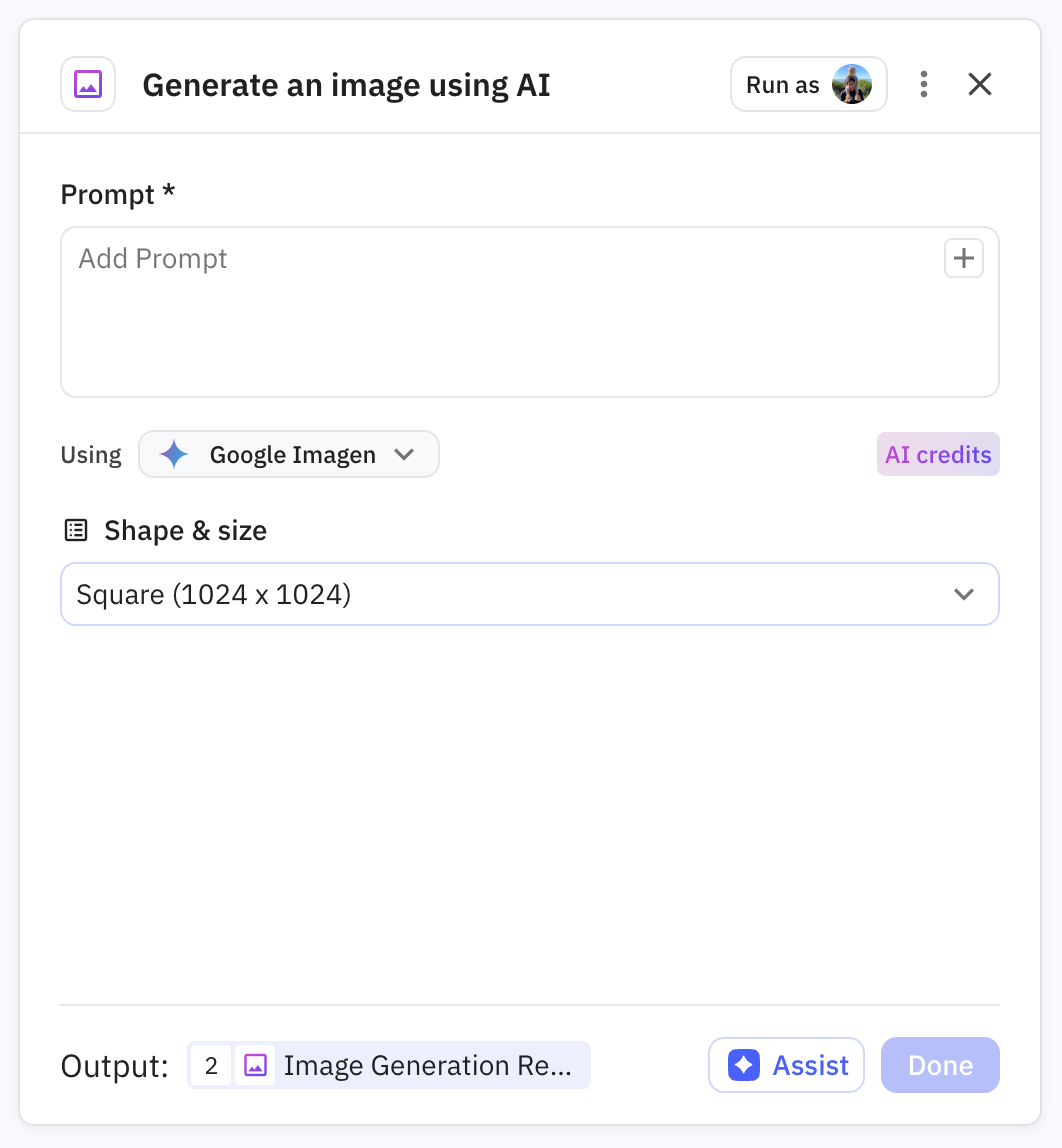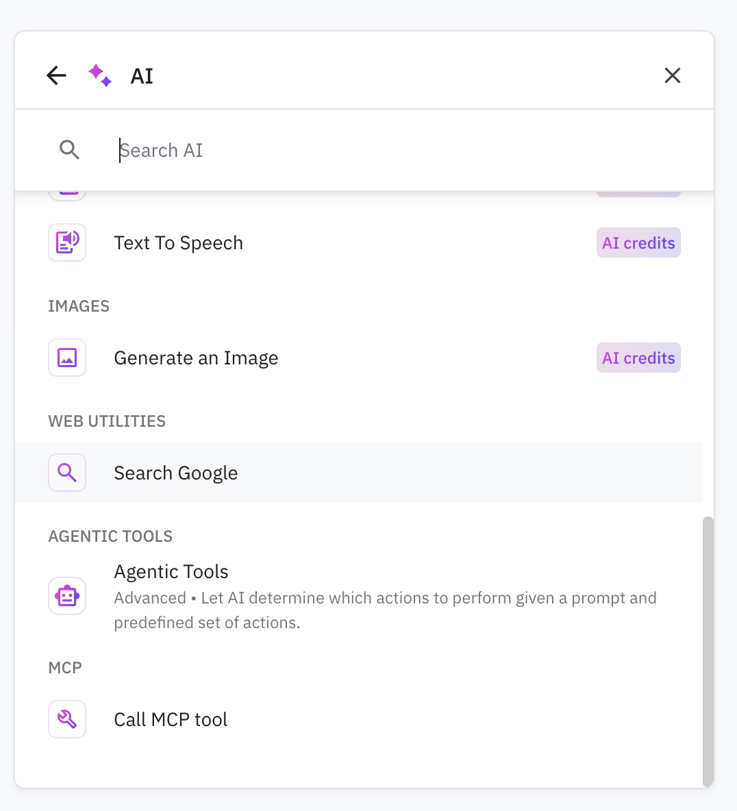 <figure><img src="https://647519108-files.gitbook.io/~/files/v0/b/gitbook-x-prod.appspot.com/o/spaces%2FXkKoEy3xMIYaIwd4mRAB%2Fuploads%2Fgit-blob-7f2b43ee2f536a88870f86d8df7d5bac451dfe8a%2FScreenshot%202025-07-03%20at%202.45.26%E2%80%AFPM.png?alt=media" alt="" width="375"><figcaption><p>The AI step menu scrolled down to "Generate an Image".</p></figcaption></figure>