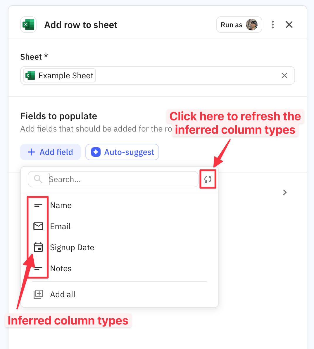 <div align="left"><figure><img src="https://647519108-files.gitbook.io/~/files/v0/b/gitbook-x-prod.appspot.com/o/spaces%2FXkKoEy3xMIYaIwd4mRAB%2Fuploads%2Fgit-blob-458271b068c7e77a7ebd23153cef34c9691a73a7%2FCleanShot%202025-09-05%20at%2012.45.49%402x.png?alt=media" alt="" width="563"><figcaption><p>To force-refresh the inferred column types, click the little 'refresh' icon</p></figcaption></figure></div>