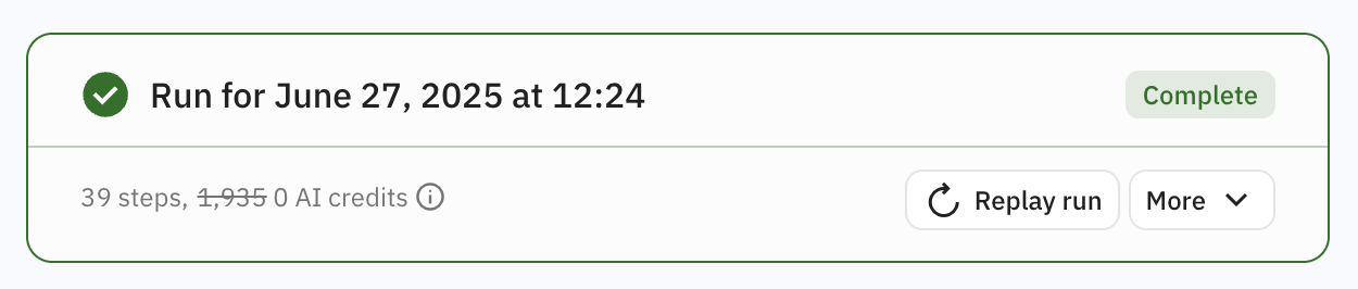 You'll see a summary of how many AI credits a step would have used at the top of the run once it's complete.
