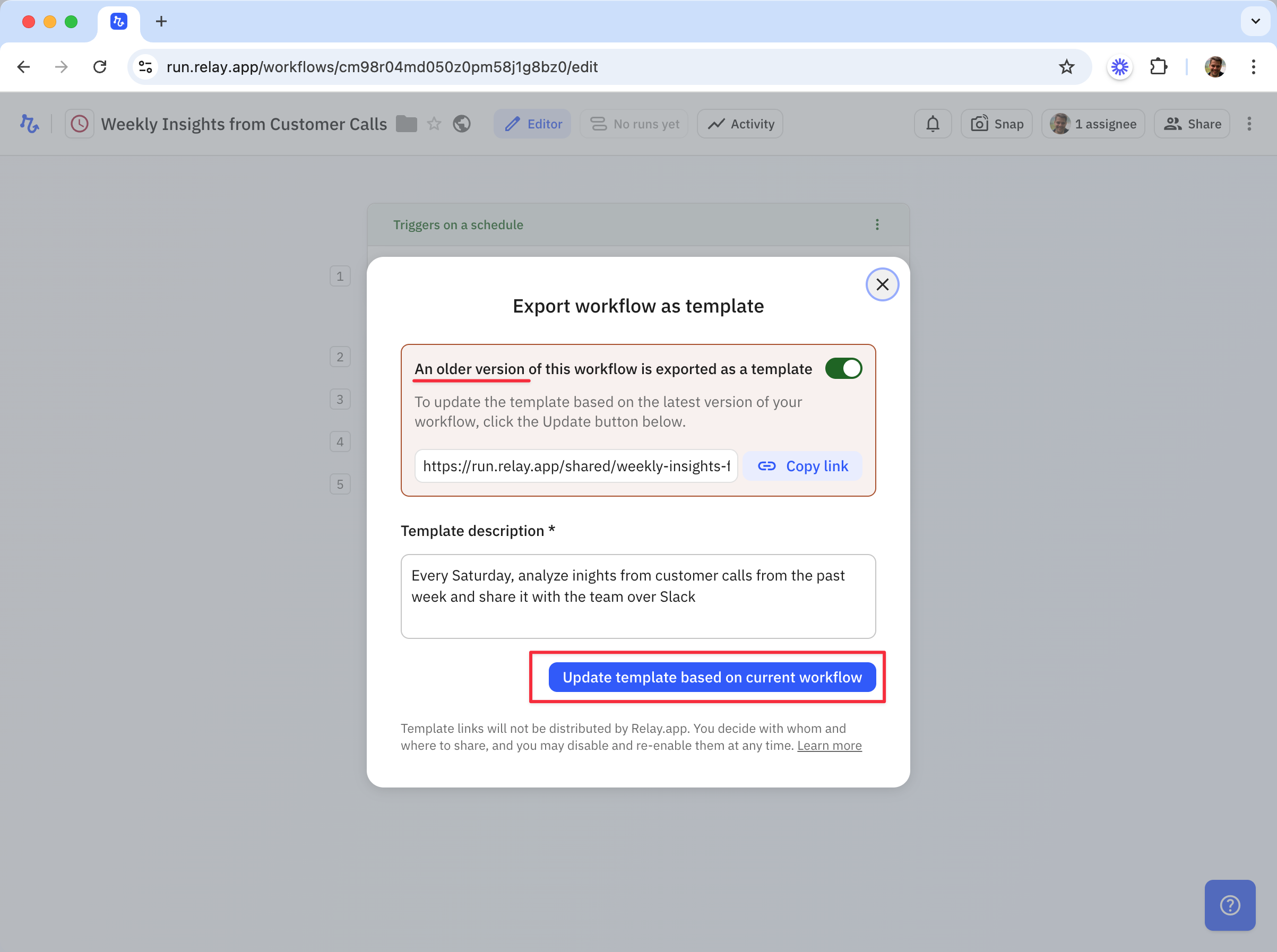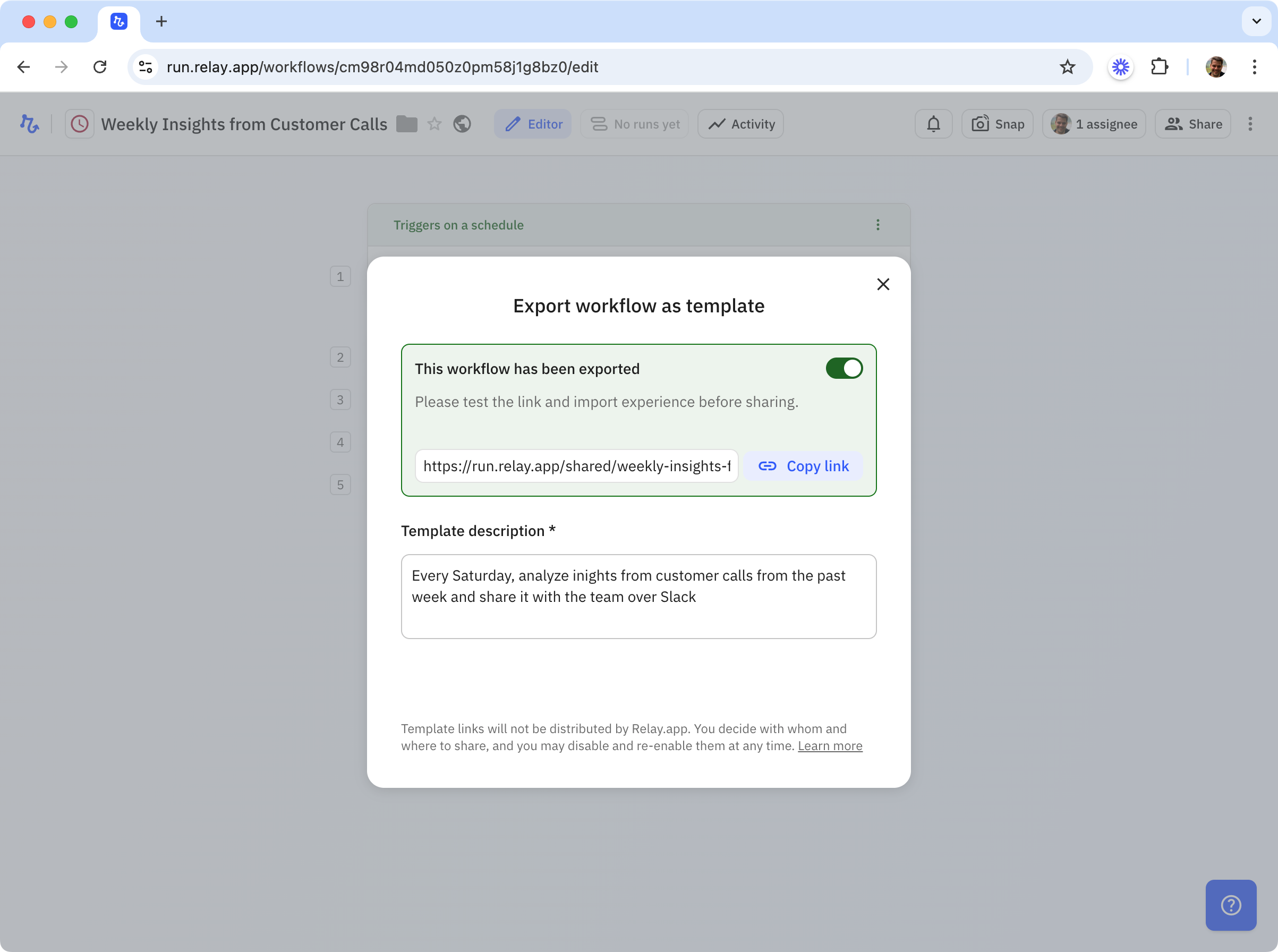 Links to templates are yours to share – Relay.app won't publish them anywhere unless you [submit them to our Gallery](#submitting-your-template-to-our-template-gallery).