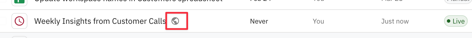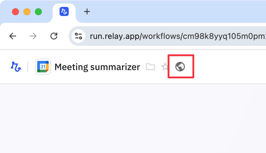 When a workflow is shared as a template, you'll notice a globe icon next to its name in the [list](https://run.relay.app/workflows).